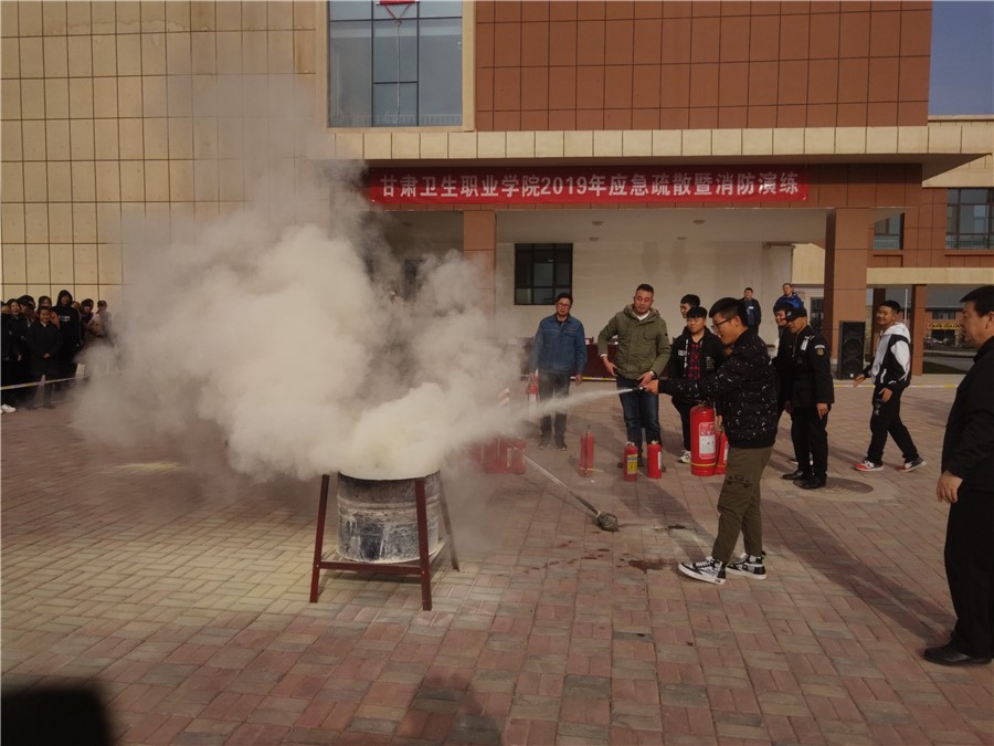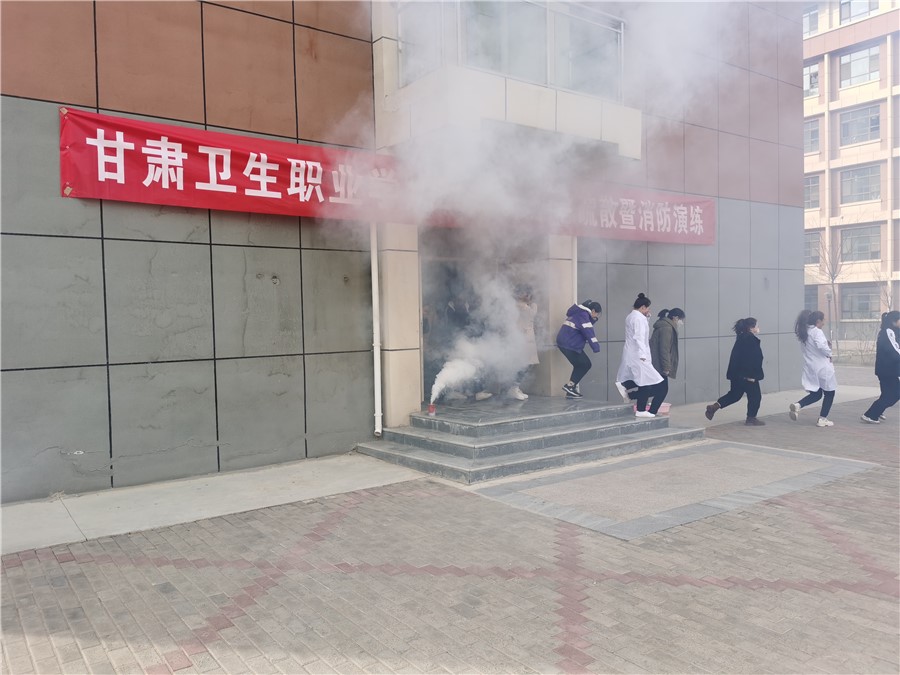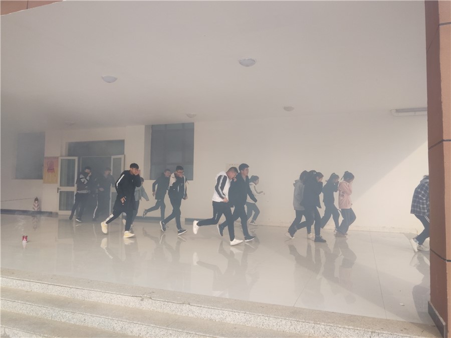 隨著畢效武副校長一聲令下,各項演練活動有序展開。演練內容由學生逃生自救疏散、消防設備應急保障、滅火器材使用方法、滅火器材體驗操作等項目構成。其中學生逃生自救疏散演練項目比較真實地模擬了火災突發現場,同學們用濕毛巾、衣袖捂住口鼻,由教學樓及公寓各樓層的輔導員班主任、安全員迅速組織疏散。整個疏散過程緊張有序、實用性強。