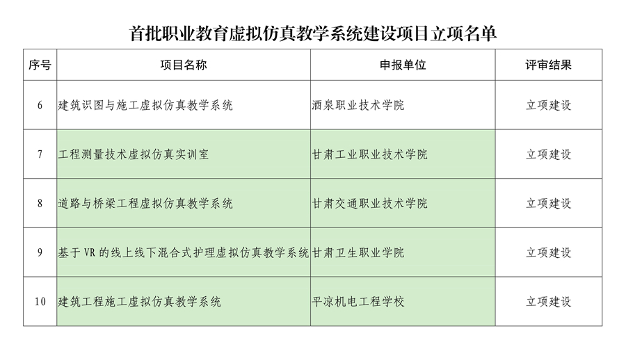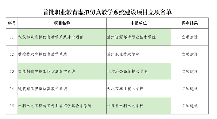 根據《國務院關于印發<國家職業教育改革實施方案>的通知》(國發[2019]4號)和《甘肅省教育廳等六部門關于印發<現代職業教育體系建設規劃(2014-2020年)>的通知》(甘教廳[2014]74號)精神,今年7月省教育廳決定開展首批職業教育虛擬仿真教學系統建設項目的認定工作,面向資源環境、土木水利、交通運輸、智能制造、物流、新能源等領域,認定15個職業教育虛擬仿真教學系統建設項目,省優質高等職業院校推薦3個,其它高職高專院校推薦1個。