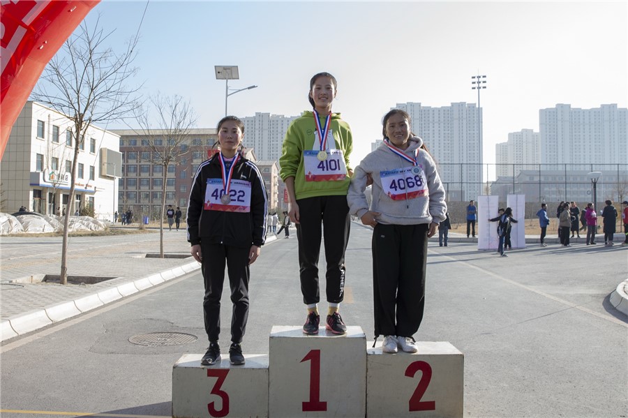 本次比賽分教職工男子組、教職工女子組、學生男子組、學生女子組四個組別,本次比賽路線途經7號教學樓、醫學基礎部、北門、人工湖、學生公寓、教職工公寓、體育館、排球場、體育館西門、田徑場。校長任暉宣布開賽,黨委書記姜德民發令,伴隨著發令槍聲全體參賽選手不畏嚴寒奮勇爭先。在寒冷的比賽中參賽的隊員們相互競爭、加油鼓勁,充分發揚了“友誼第一 比賽第二”的體育精神,讓寒冷的冬季有了些許溫暖。在激烈又歡快的氣氛中,選手們陸續沖過終點。最終,吉帆帆、馮靈虎、郭彥存三位老師獲得教職工青年男子組前三名。劉萬里、任世偉、王平三位老師獲得教職工中老年男子組前三名。王雙來、趙秋燕、吳亞亞三位老師獲得教職工青年女子組前三名。羅亞莉、趙曉玲、王鳳麗三位老師獲得教職工中老年女子組前三名。車建強、宋尕文、李澤輝獲得學生男子組前三名。白會霞、次旺央宗、姚馬麗獲得學生女子組前三名。