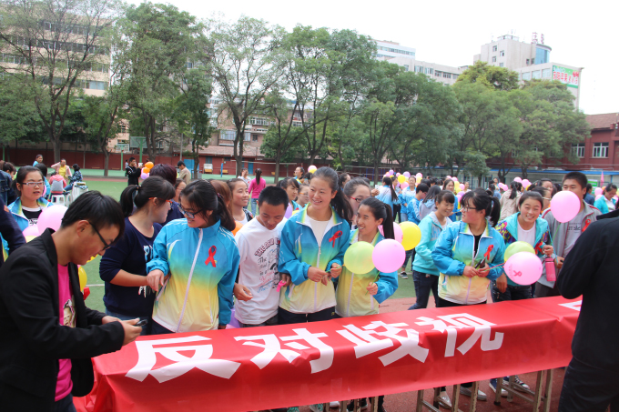 活動結束時,疾控中心的李莉老師對學院《職業院校預防艾滋病同伴教育體系構建研究》項目的成果予以肯定。任世偉副校長講話,并向全體師生提出希望。他指出:一要認識艾滋,抵御艾滋。認清預防艾滋病的嚴峻形勢,認識艾滋病對人類健康和大學生身心發展的嚴重危害,認真學習艾滋病及其預防知識,倡導健康生活,踐行文明風尚,自覺追求積極向上的生活理念,潔身自好,樹立正確的道德意識和性觀念,自我保護,遠離艾滋。二要尊重科學,掌握方法。大學生是社會中的一個活躍群體,也是未來社會的主體與支柱。我們應當從自身做起,正確對待艾滋病,預防艾滋病。遵章守紀、潔身自愛,珍愛生命、拒絕毒品。掌握預防艾滋病的正確方法,不使用未經檢驗的血液制品,減少不必要的輸血,不去消毒不嚴格的醫療機構打針、拔牙、針灸、美容或手術。三要行動起來,向“零”艾滋邁進。“反對歧視、提倡關愛”紅絲帶行動,是我院大學生開展的預防艾滋病宣傳教育活動和大學生防艾志愿服務行動。全體師生要用愛心、真誠和責任心來共同努力,使越來越多的有社會責任感的團體和個人都來關注艾滋,關愛艾滋病患者,用紅絲帶去裝點一個健康的美麗世界。全校師生攜起手來,反對歧視,關愛生命,讓愛撐起一方藍色的天空。