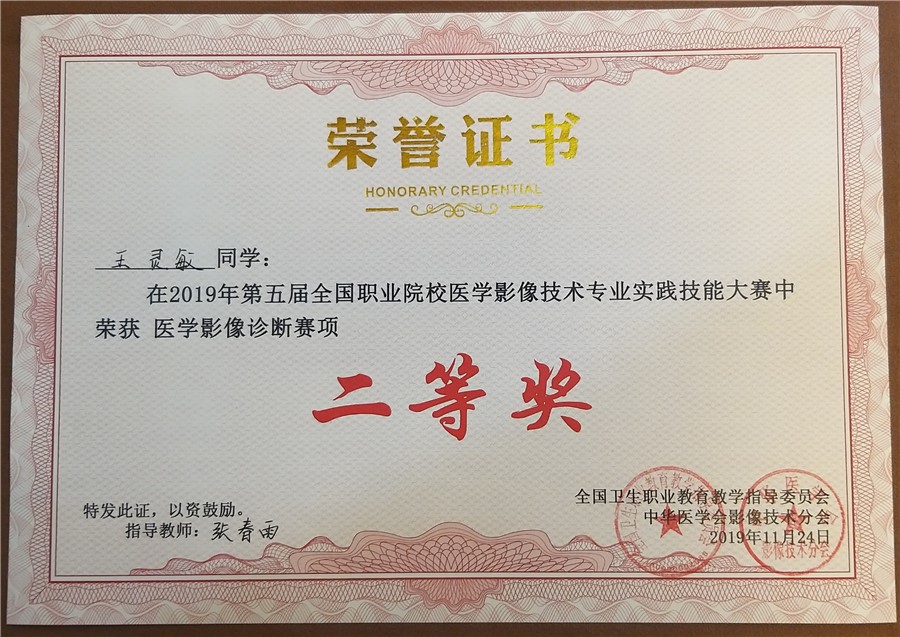 醫學技術學院學生在第五屆全國職業院校醫學影像技術專業實踐技能大賽中獲影像診斷二等獎