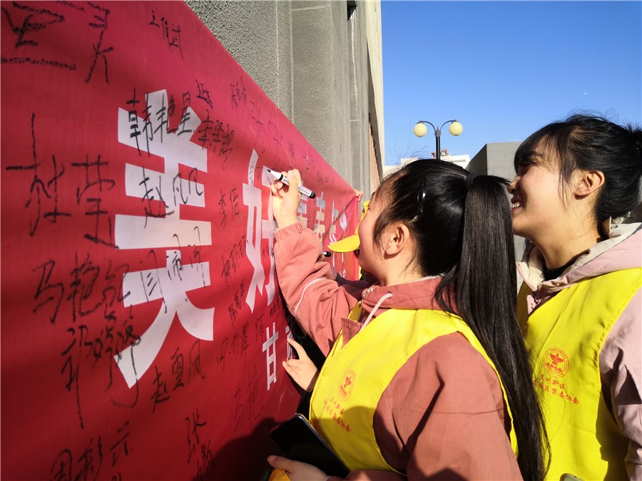 參觀結束后各位志愿者在李鵬飛老師的帶領下莊嚴宣誓,并在 “同心遠離毒品危害、共享美好青春年華”的橫幅上簽上了自己的名字。
