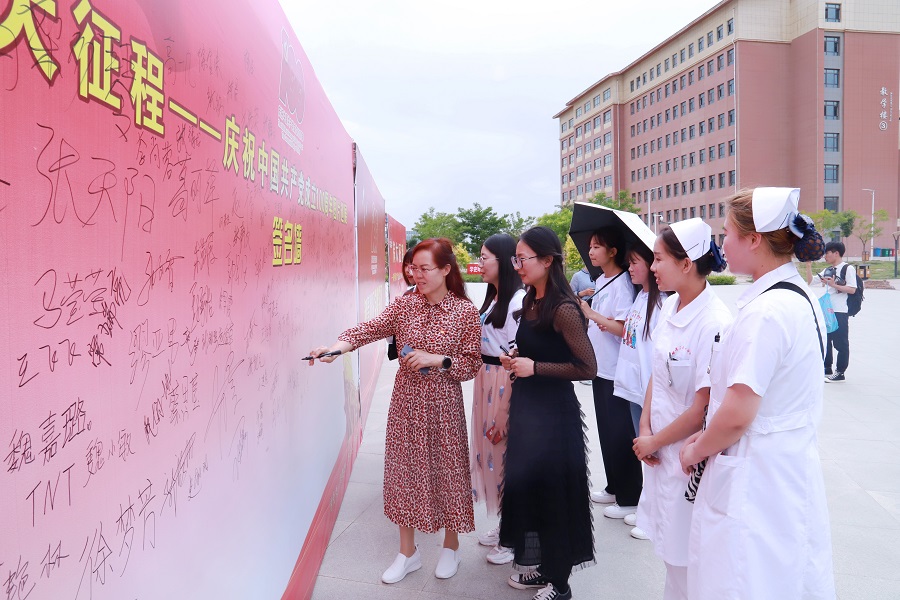 6月22日下午,甘肅衛生職業學院慶祝中國共產黨成立100周年圖片巡展活動啟動儀式在雕塑廣場拉開帷幕,學校全體黨員及部分學生參加了此次活動。