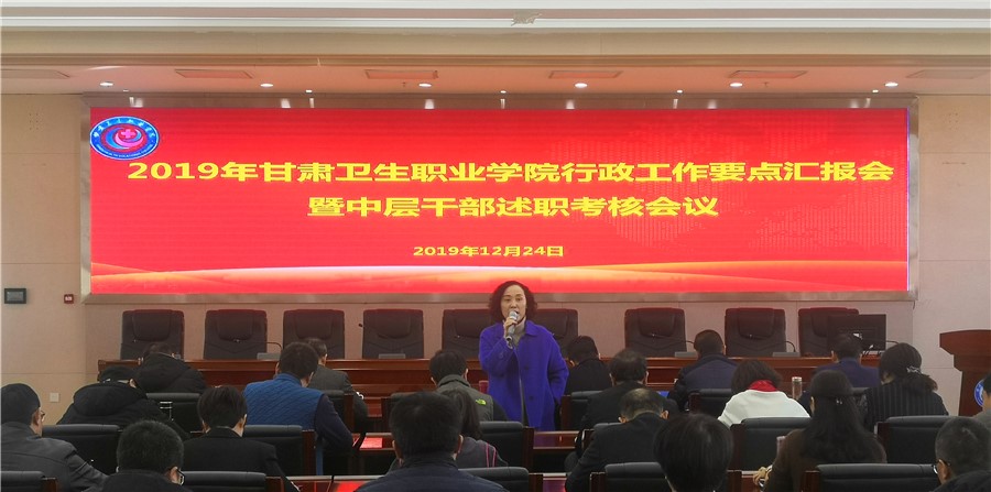 12月24日下午,學校在辦公樓八樓會議室組織召開了2019年學院行政工作要點終期匯報會。全體校領導、副縣級領導干部、中層干部、高級職稱教師、各處室干事及二級學院輔導員代表參加了匯報會,會議由任暉校長主持。