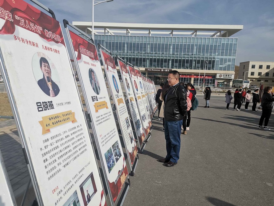 11月18日-19日, 甘肅省教育廳主辦的甘肅省優秀教師先進事跡巡展在學校體育館門前舉行。為深入宣傳隴原優秀教師的先進事跡,大力弘揚新時代尊師風尚,發揮優秀教師的模范榜樣作用,教務處組織全校師生對展覽進行了參觀學習。